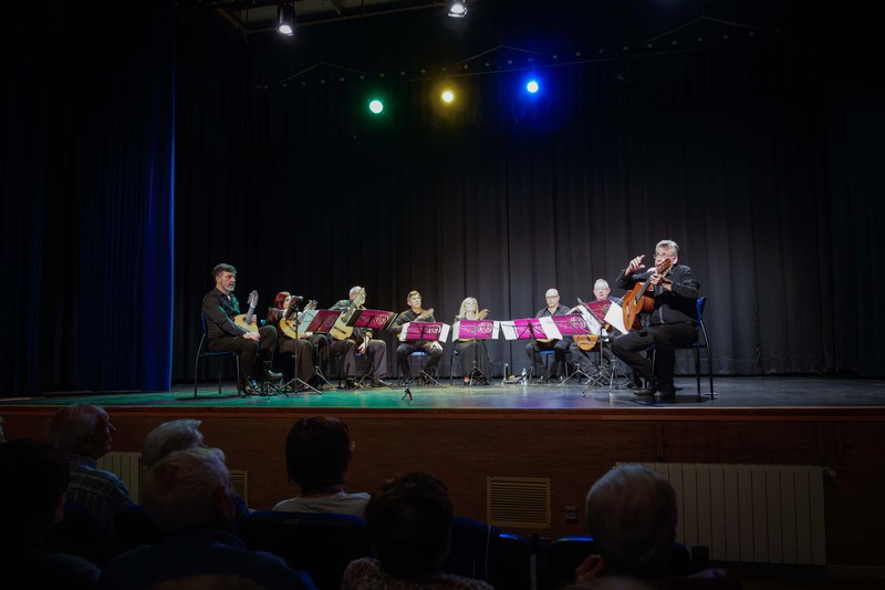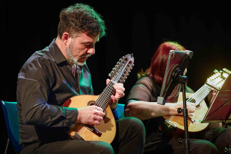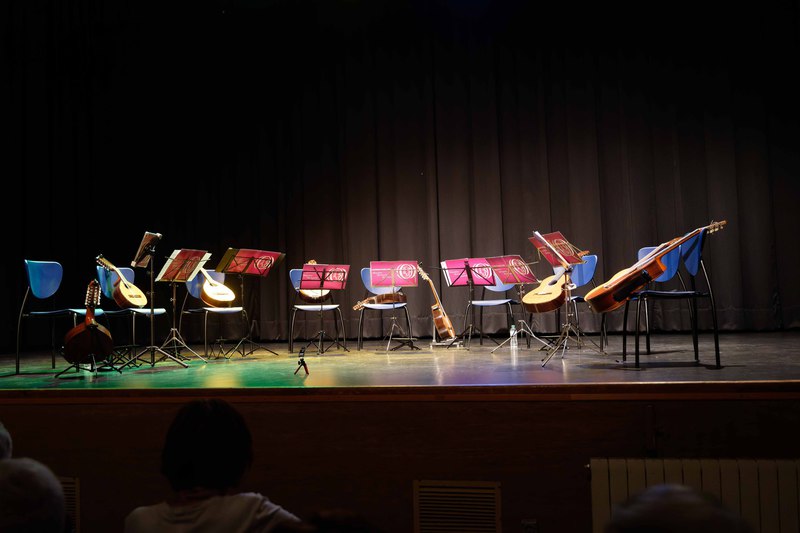 Obras de J. de la Encina, Narváez, Alfonso X, Mainerio, Falconieri, Ruiz de Ribayaz, Fauré, Gaspar Sanz y por supueso J. Rodrigo